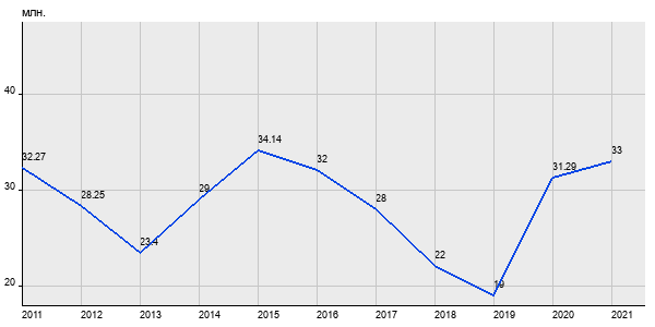 32.27 млн. руб, а в 2021 году - 33 млн. руб. Таким образом, средняя стоимость двухкомнатных квартир в районе "Крылатское" за