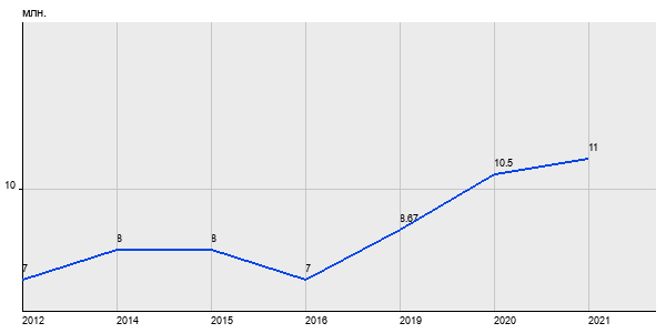7 млн. руб, а в 2021 году - 11 млн. руб. Таким образом, средняя стоимость двухкомнатных квартир в районе "Филёвский Парк" за