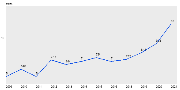 5 млн. руб, а в 2021 году - 12 млн. руб. Таким образом, средняя стоимость двухкомнатных квартир в районе "Ново-Переделкино" за