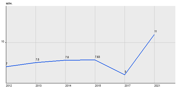 7 млн. руб, а в 2021 году - 11 млн. руб. Таким образом, средняя стоимость двухкомнатных квартир в районе "Южное Бутово" за