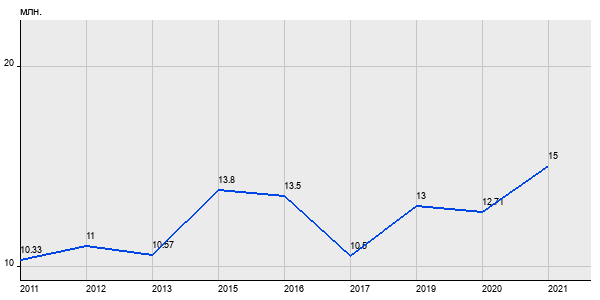 10.33 млн. руб, а в 2021 году - 15 млн. руб. Таким образом, средняя стоимость трёхкомнатных квартир в районе "Царицыно" за