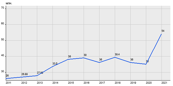 26 млн. руб, а в 2021 году - 54 млн. руб. Таким образом, средняя стоимость трёхкомнатных квартир в районе "Хорошёвский" за