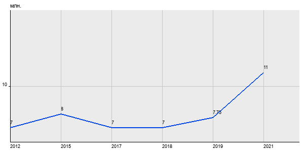 7 млн. руб, а в 2021 году - 11 млн. руб. Таким образом, средняя стоимость двухкомнатных квартир в районе "Можайский" за