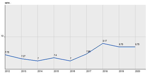 7.75 млн. руб, а в 2020 году - 8.75 млн. руб. Таким образом, средняя стоимость двухкомнатных квартир в районе "" за