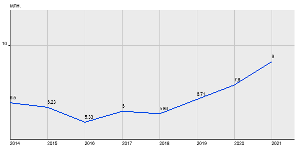 6.5 млн. руб, а в 2021 году - 9 млн. руб. Таким образом, средняя стоимость однокомнатных квартир в районе "Южное Медведково" за