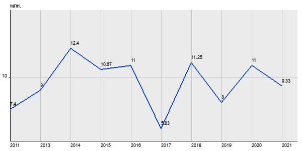 7.4 млн. руб, а в 2021 году - 9.33 млн. руб. Таким образом, средняя стоимость однокомнатных квартир в районе "Красносельский" за