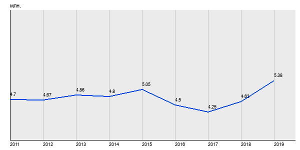 4.7 млн. руб, а в 2019 году - 5.38 млн. руб. Таким образом, средняя стоимость однокомнатных квартир в районе "" за