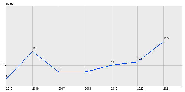8 млн. руб, а в 2021 году - 13.5 млн. руб. Таким образом, средняя стоимость двухкомнатных квартир в районе "" за