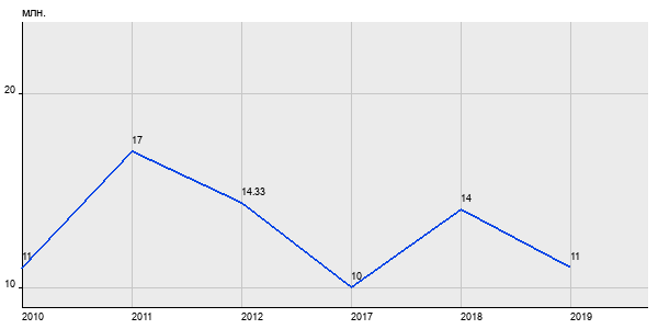 11 млн. руб, а в 2019 году - 11 млн. руб. Таким образом, средняя стоимость двухкомнатных квартир в районе "Раменки" за
