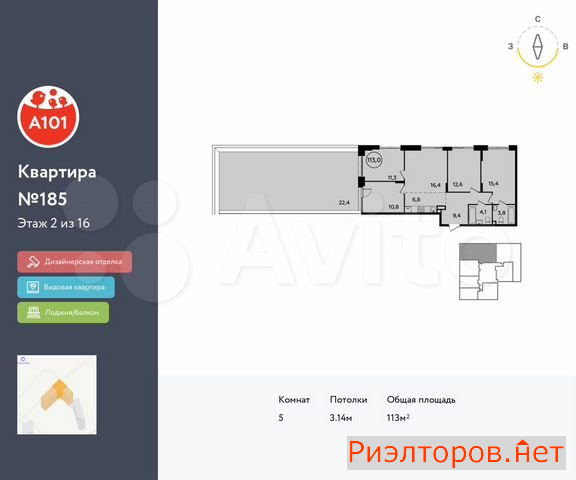 Квартира 5-к. 114.1 м2