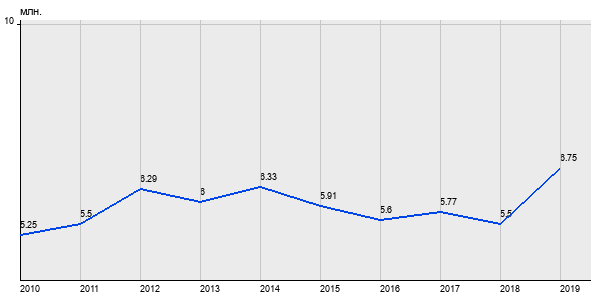 5.25 млн. руб, а в 2019 году - 6.75 млн. руб. Таким образом, средняя стоимость однокомнатных квартир в районе "Можайский" за