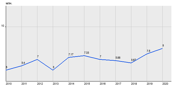 6 млн. руб, а в 2020 году - 8 млн. руб. Таким образом, средняя стоимость двухкомнатных квартир в районе "Орехово-Борисово Южное" за
