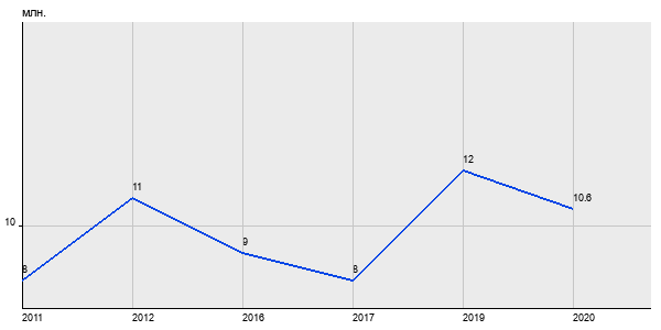8 млн. руб, а в 2020 году - 10.6 млн. руб. Таким образом, средняя стоимость двухкомнатных квартир в районе "Филёвский Парк" за