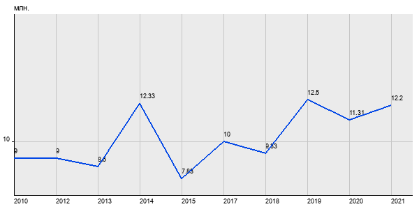 9 млн. руб, а в 2021 году - 12.2 млн. руб. Таким образом, средняя стоимость двухкомнатных квартир в районе "Таганский" за