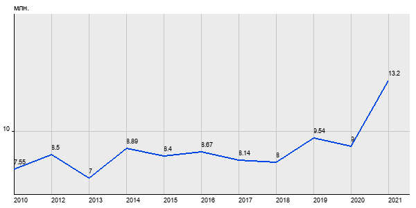 7.55 млн. руб, а в 2021 году - 13.2 млн. руб. Таким образом, средняя стоимость двухкомнатных квартир в районе "Можайский" за