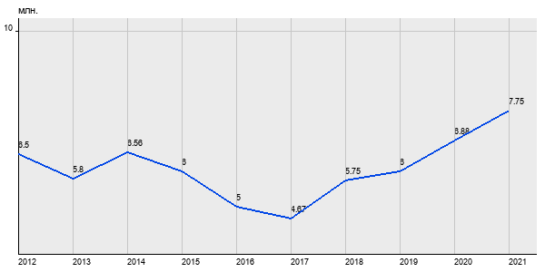 6.5 млн. руб, а в 2021 году - 7.75 млн. руб. Таким образом, средняя стоимость однокомнатных квартир в районе "Чертаново Южное" за