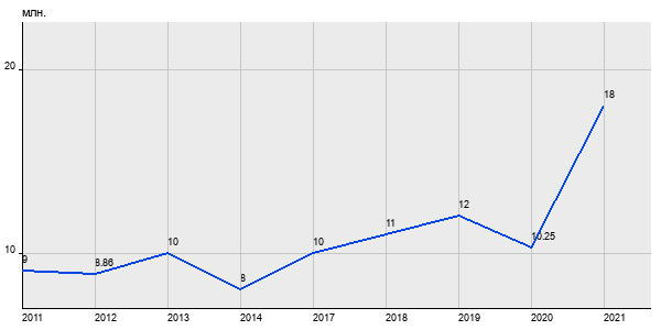 9 млн. руб, а в 2021 году - 18 млн. руб. Таким образом, средняя стоимость двухкомнатных квартир в районе "" за