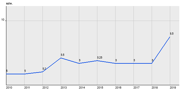 5 млн. руб, а в 2019 году - 8.5 млн. руб. Таким образом, средняя стоимость двухкомнатных квартир в районе "" за