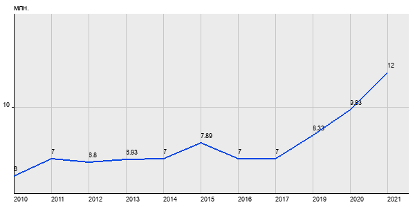 6 млн. руб, а в 2021 году - 12 млн. руб. Таким образом, средняя стоимость однокомнатных квартир в районе "Коньково" за