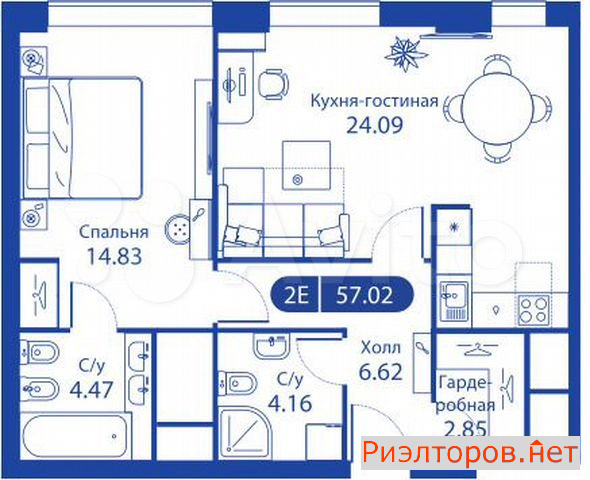 Квартира 2-к. 57.0 м2