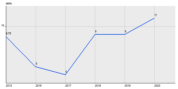 8.75 млн. руб, а в 2020 году - 11 млн. руб. Таким образом, средняя стоимость двухкомнатных квартир в районе "" за