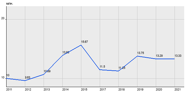 10 млн. руб, а в 2021 году - 13.33 млн. руб. Таким образом, средняя стоимость двухкомнатных квартир в районе "Сокольники" за