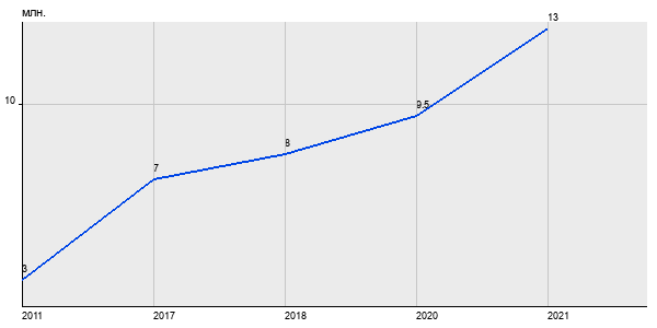 3 млн. руб, а в 2021 году - 13 млн. руб. Таким образом, средняя стоимость трёхкомнатных квартир в районе "" за