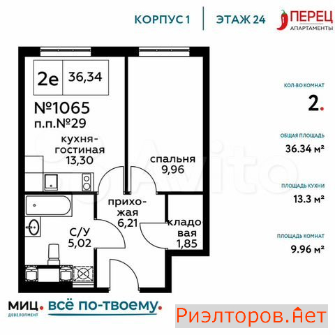 Старт продаж!Предлагаю к продажется 2-комнатные апартаменты площадью 37.77 кв. метров с отделкой под ключ на 9 этаже 27 этажного дома.Сити-комплекс ПЕРЕЦ– выбор молодых, ярких и энергичных, идущих к цели и бесконечно влюбленных в жизнь. Это жилые апартаменты для тех, кто хочет жить в потоке энергии и молодости!Сити-комплекс ПЕРЕЦ– живи сразу!ПЕРЕЦ находится в районе Митино – один из наиболее привлекательных по своему ландшафту районов не только на северо-западе, но и в Москве в целом. Район отличается компактностью жилой застройки, продвинутой инфраструктурой и удобными транспортными коммуникациями.Инфраструктура:Митинский лесопарк и ландшафтный паркСупермаркеты, Торговые центрыКафе и рестораныСредние школы и детские садикиРасположение комплекса:700 метров от станции метро «Пятницкое шоссе»10 минут до МКАД