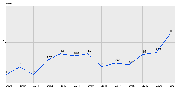 6 млн. руб, а в 2021 году - 11 млн. руб. Таким образом, средняя стоимость двухкомнатных квартир в районе "" за