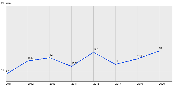 9.5 млн. руб, а в 2020 году - 13 млн. руб. Таким образом, средняя стоимость трёхкомнатных квартир в районе "" за