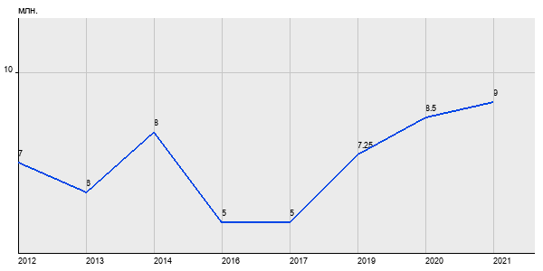 7 млн. руб, а в 2021 году - 9 млн. руб. Таким образом, средняя стоимость двухкомнатных квартир в районе "Текстильщики" за