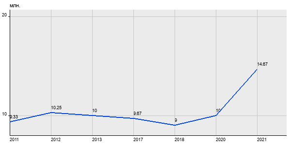 9.33 млн. руб, а в 2021 году - 14.67 млн. руб. Таким образом, средняя стоимость трёхкомнатных квартир в районе "Южное Бутово" за