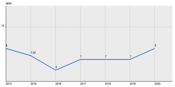 8 млн. руб, а в 2020 году - 8 млн. руб. Таким образом, средняя стоимость трёхкомнатных квартир в районе "Бирюлёво Восточное" за