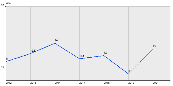 11 млн. руб, а в 2021 году - 13 млн. руб. Таким образом, средняя стоимость двухкомнатных квартир в районе "Лефортово" за