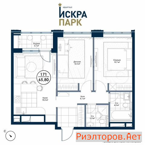 Квартира 2-к. 65.8 м2