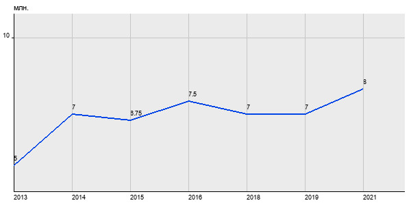 5 млн. руб, а в 2021 году - 8 млн. руб. Таким образом, средняя стоимость двухкомнатных квартир в районе "Зюзино" за