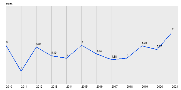 6 млн. руб, а в 2021 году - 7 млн. руб. Таким образом, средняя стоимость однокомнатных квартир в районе "Головинский" за