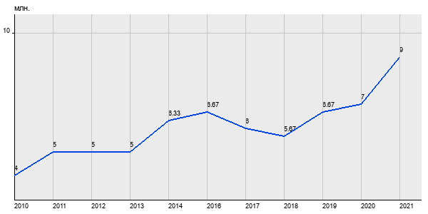 4 млн. руб, а в 2021 году - 9 млн. руб. Таким образом, средняя стоимость однокомнатных квартир в районе "Бескудниковский" за