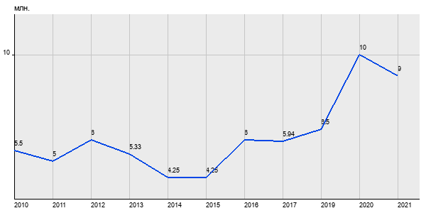 5.5 млн. руб, а в 2021 году - 9 млн. руб. Таким образом, средняя стоимость двухкомнатных квартир в районе "микро Южная Битца" за