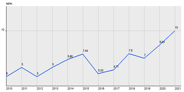 5 млн. руб, а в 2021 году - 10 млн. руб. Таким образом, средняя стоимость двухкомнатных квартир в районе "" за
