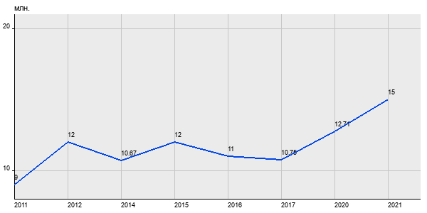 9 млн. руб, а в 2021 году - 15 млн. руб. Таким образом, средняя стоимость двухкомнатных квартир в районе "Рязанский" за