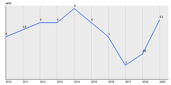 4 млн. руб, а в 2020 году - 5.2 млн. руб. Таким образом, средняя стоимость однокомнатных квартир в районе "Марьино" за