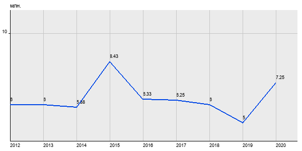 6 млн. руб, а в 2020 году - 7.25 млн. руб. Таким образом, средняя стоимость двухкомнатных квартир в районе "" за