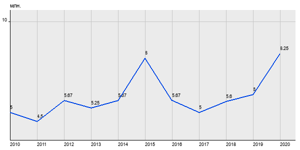 5 млн. руб, а в 2020 году - 8.25 млн. руб. Таким образом, средняя стоимость однокомнатных квартир в районе "" за