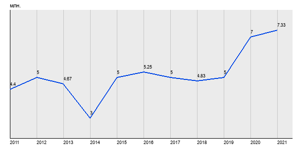 4.4 млн. руб, а в 2021 году - 7.33 млн. руб. Таким образом, средняя стоимость однокомнатных квартир в районе "" за