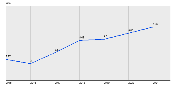 3.27 млн. руб, а в 2021 году - 5.25 млн. руб. Таким образом, средняя стоимость однокомнатных квартир в районе "" за