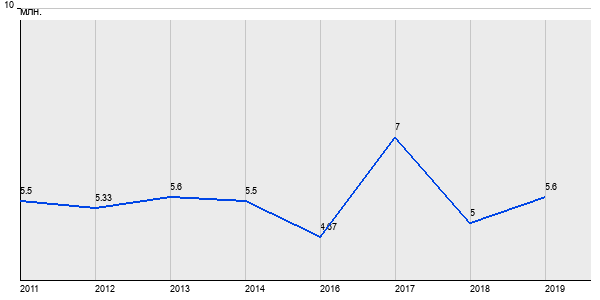 5.5 млн. руб, а в 2019 году - 5.6 млн. руб. Таким образом, средняя стоимость однокомнатных квартир в районе "" за