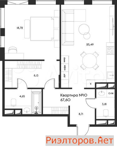 Рыночная стоимость квартиры: 34,889 млн руб.