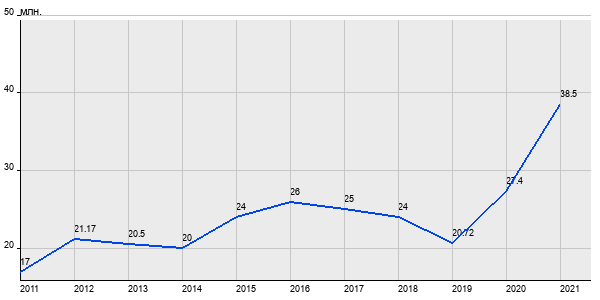 17 млн. руб, а в 2021 году - 38.5 млн. руб. Таким образом, средняя стоимость трёхкомнатных квартир в районе "Кунцево" за