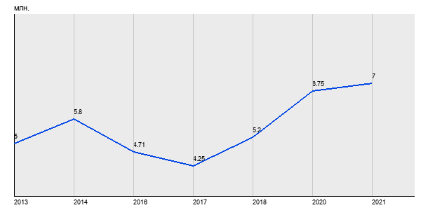 5 млн. руб, а в 2021 году - 7 млн. руб. Таким образом, средняя стоимость однокомнатных квартир в районе "Ясенево" за